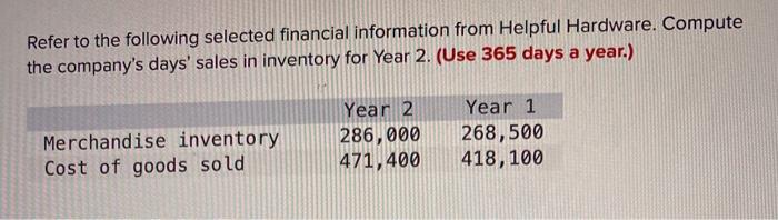 Solved Refer To The Following Selected Financial Information Chegg Com